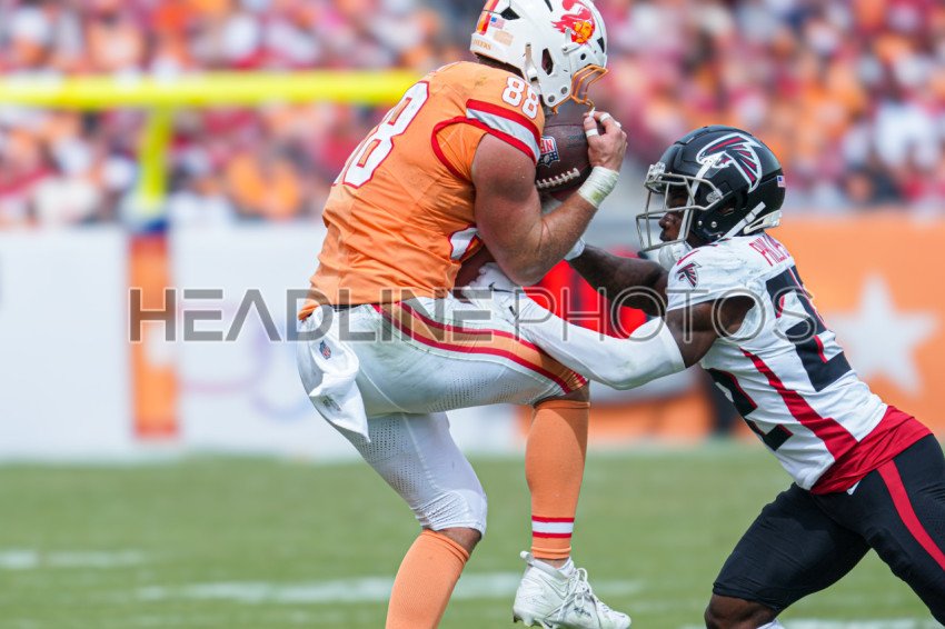 Tampa Bay, Florida, USA, October 27, 2024, Tampa Bay Buccaneers Tight End Cade Otton #88 makes a catch at Raymond James Stadium. (Photo Credit: Marty Jean-Louis)