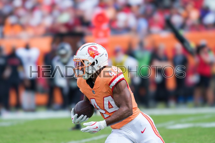 Tampa Bay, Florida, USA, October 27, 2024, Tampa Bay Buccaneers player Sean Tucker #44 makes a run at Raymond James Stadium. (Photo Credit: Marty Jean-Louis)