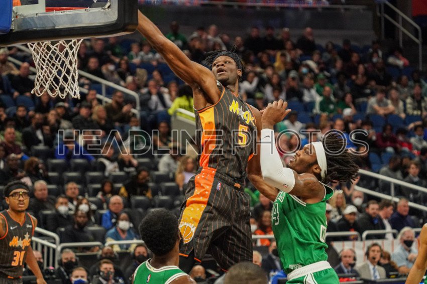 Orlando, Florida, USA, February 6, 2022, Orlando Magic Center Mo Bamba #5 attempt to make a dunk during the first half at the Amway Center. (Photo Credit: Marty Jean-Louis)