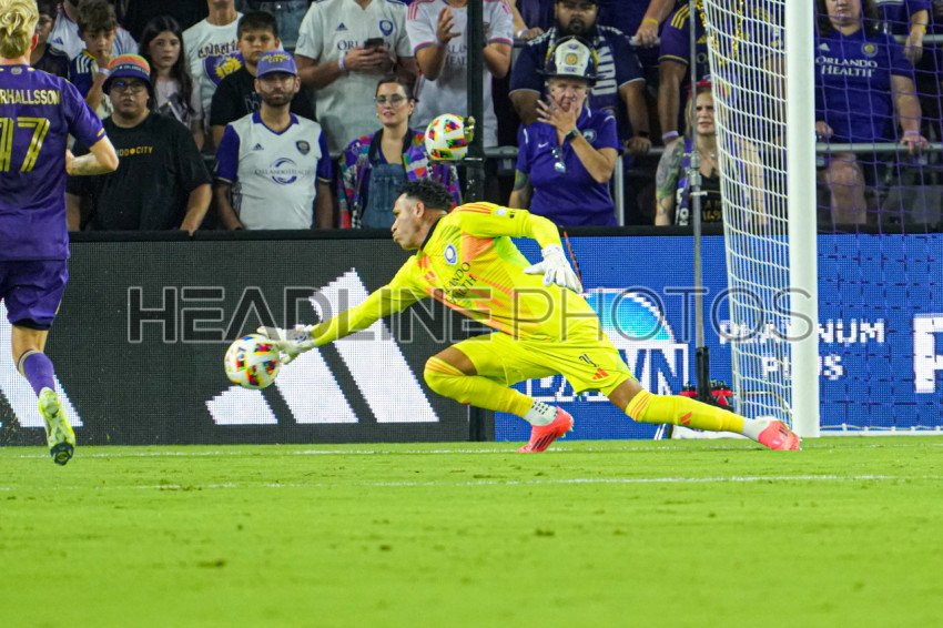 Orlando, Florida, USA, October 27, 2024, Orlando City SC goalkeeper Pedro Gallese #1 makes a save at Inter&Co Stadium. (Photo Credit: Marty Jean-Louis)