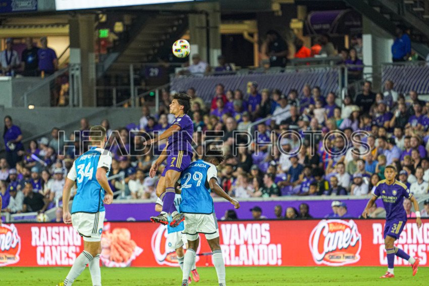 Orlando, Florida, USA, October 27, 2024, Orlando City SC forward Ramiro Enrique #7 wins the header at Inter&Co Stadium. (Photo Credit: Marty Jean-Louis)
