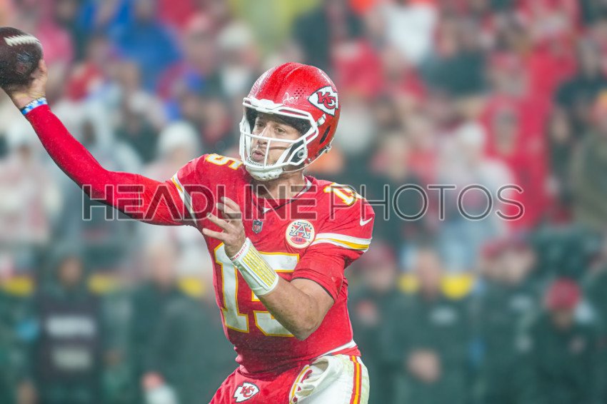 Kansas City, Missouri, USA, November 4, 2024, Kansas City Chiefs quarterback Patrick Mahomes #15 makes a pass at GEHA Field Arrowhead Stadium. (Photo Credit: Marty Jean-Louis)