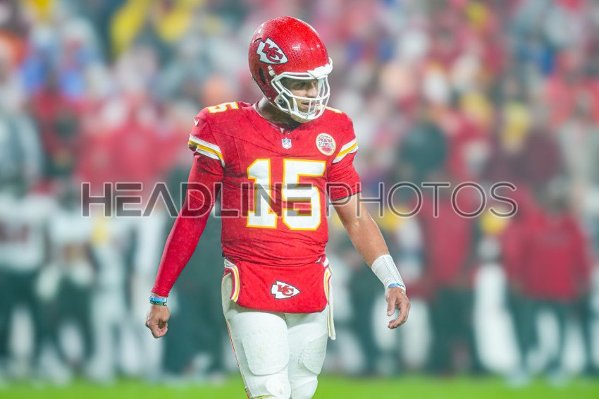 Kansas City, Missouri, USA, November 4, 2024, Kansas City Chiefs quarterback Patrick Mahomes #15 at GEHA Field Arrowhead Stadium. (Photo Credit: Marty Jean-Louis)