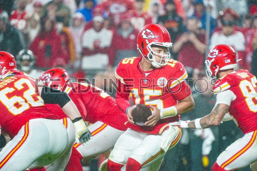 Kansas City, Missouri, USA, November 4, 2024, Kansas City Chiefs quarterback Patrick Mahomes #15 readies to make a pass at GEHA Field Arrowhead Stadium. (Photo Credit: Marty Jean-Louis)