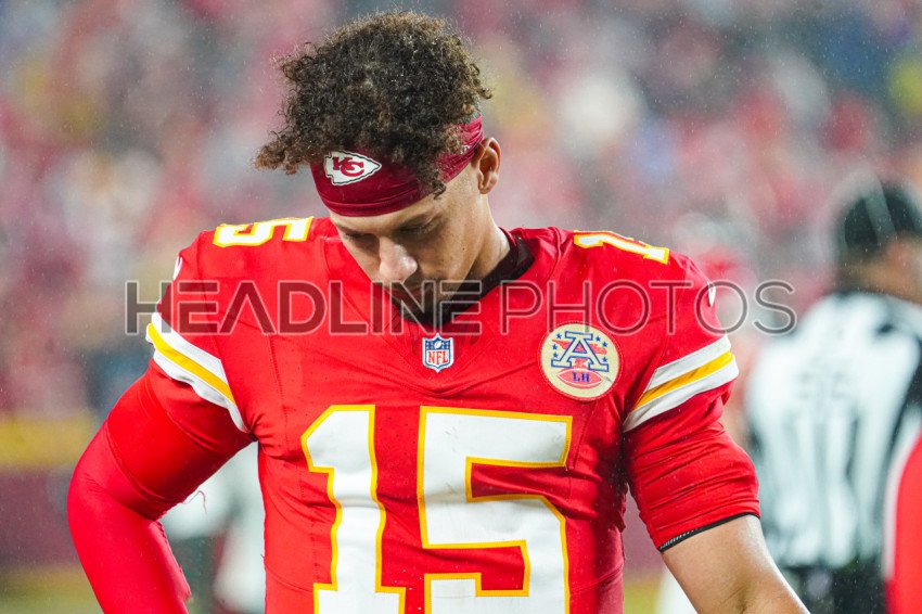 Kansas City, Missouri, USA, November 4, 2024, Kansas City Chiefs quarterback Patrick Mahomes #15 with his head down at GEHA Field Arrowhead Stadium. (Photo Credit: Marty Jean-Louis)