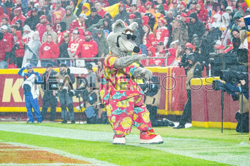 Kansas City, Missouri, USA, November 4, 2024, Kansas City Chiefs Mascot KC Wolf at GEHA Field Arrowhead Stadium. (Photo Credit: Marty Jean-Louis)