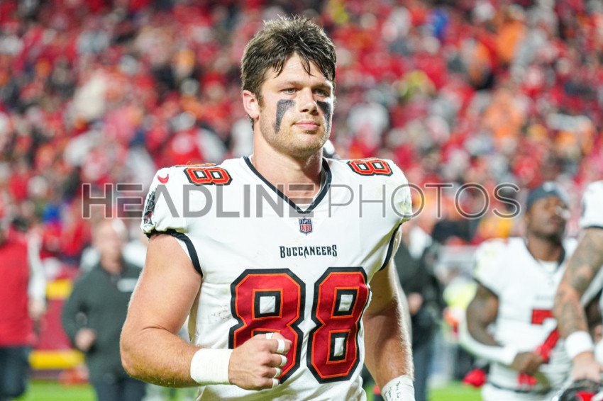 Kansas City, Missouri, USA, November 4, 2024, Tampa Bay Buccaneers player Cade Otton #88 heads to the locker during half time at GEHA Field Arrowhead Stadium. (Photo Credit: Marty Jean-Louis)