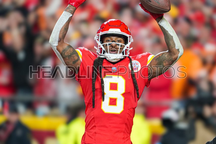 Kansas City, Missouri, USA, November 4, 2024, Kansas City Chiefs player Deandre Hopkins #8 celebrate after making a touchdown at GEHA Field Arrowhead Stadium. (Photo Credit: Marty Jean-Louis)