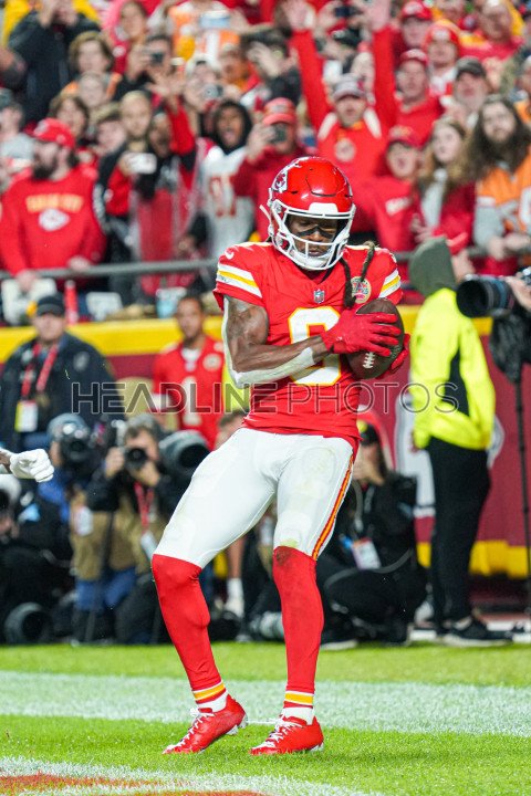 Kansas City, Missouri, USA, November 4, 2024, Kansas City Chiefs player Deandre Hopkins #8 receives a pass resulting in a touchdown at GEHA Field Arrowhead Stadium. (Photo Credit: Marty Jean-Louis)