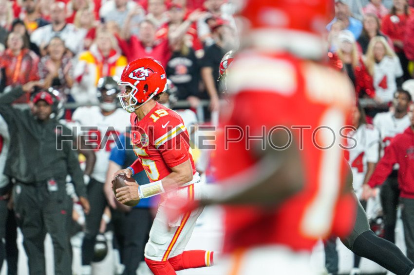 Kansas City, Missouri, USA, November 4, 2024, Kansas City Chiefs quarterback Patrick Mahomes #15 on the run at GEHA Field Arrowhead Stadium. (Photo Credit: Marty Jean-Louis)