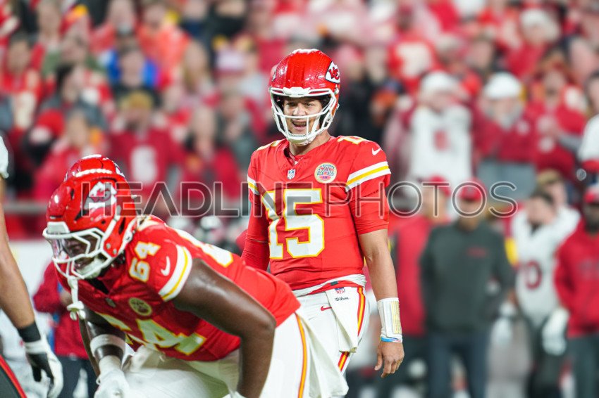 Kansas City, Missouri, USA, November 4, 2024, Kansas City Chiefs quarterback Patrick Mahomes #15 at GEHA Field Arrowhead Stadium. (Photo Credit: Marty Jean-Louis)