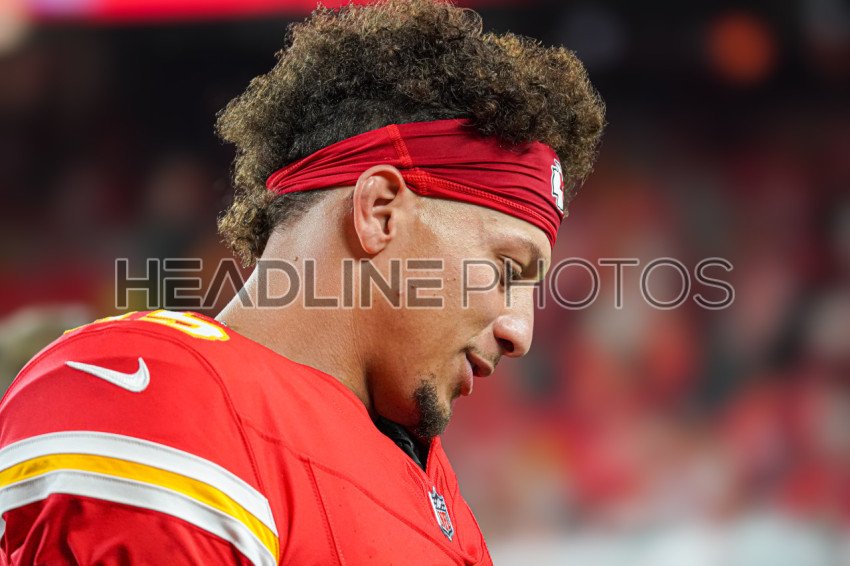 Kansas City, Missouri, USA, November 4, 2024, Kansas City Chiefs quarterback Patrick Mahomes #15 warming up at GEHA Field Arrowhead Stadium. (Photo Credit: Marty Jean-Louis)