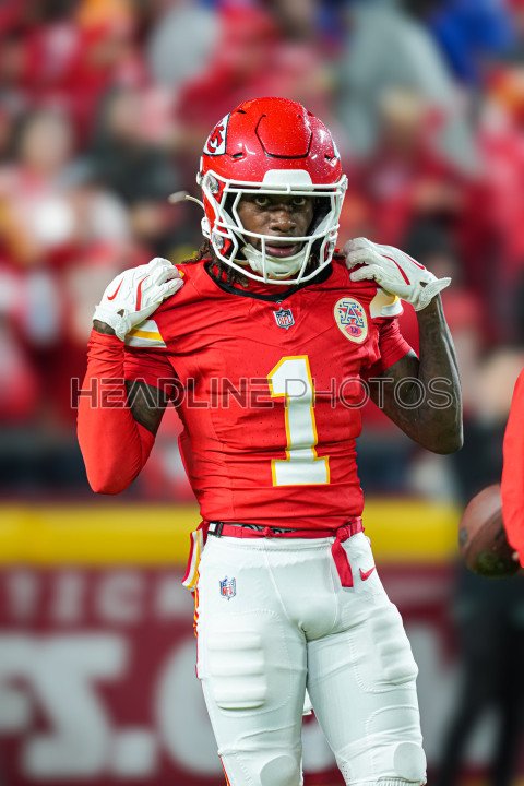Kansas City, Missouri, USA, November 4, 2024, Kansas City Chiefs wide receiver Xavier Worthy #1 warming up at GEHA Field Arrowhead Stadium. (Photo Credit: Marty Jean-Louis)