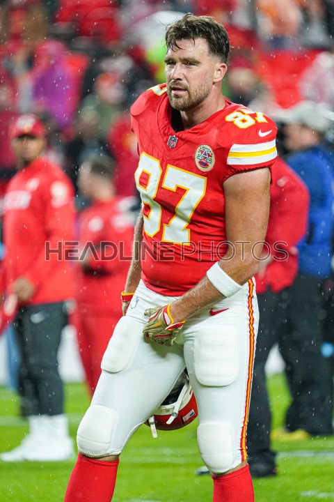 Kansas City, Missouri, USA, November 4, 2024, Kansas City Chiefs Tight End Travis Kelce #87 warming up at GEHA Field Arrowhead Stadium. (Photo Credit: Marty Jean-Louis)