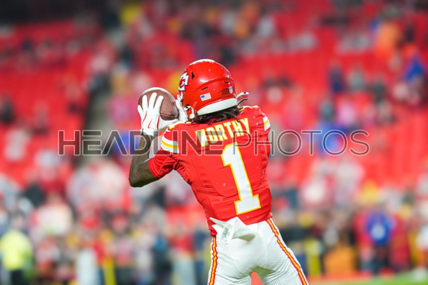 Kansas City, Missouri, USA, November 4, 2024, Kansas City Chiefs wide receiver Xavier Worthy #1 warming up at GEHA Field Arrowhead Stadium. (Photo Credit: Marty Jean-Louis)