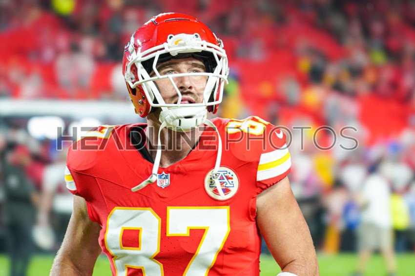 Kansas City, Missouri, USA, November 4, 2024, Kansas City Chiefs Tight End Travis Kelce #87 warming up at GEHA Field Arrowhead Stadium. (Photo Credit: Marty Jean-Louis)