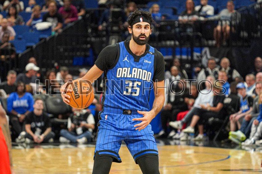 Orlando, Florida, USA, November 8, 2024, Orlando Magic center Goga Bitadze #35 look to make a pass in the first half at the Kia Center. (Photo Credit: Marty Jean-Louis)