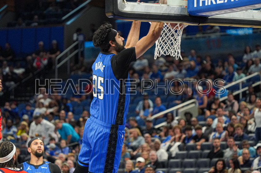 Orlando, Florida, USA, November 8, 2024, Orlando Magic center Goga Bitadze #35 makes a dunk in the first half at the Kia Center. (Photo Credit: Marty Jean-Louis)