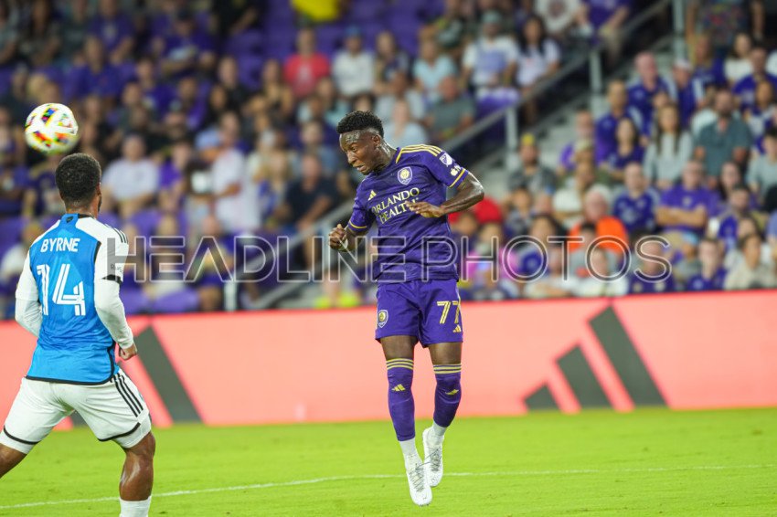 Orlando, Florida, USA, November 9, 2024, Orlando City SC midfielder Ivan Angulo #77 makes a header at Inter&Co Stadium. (Photo Credit: Marty Jean-Louis)