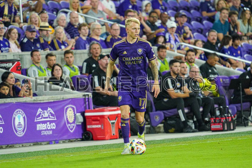 Orlando, Florida, USA, November 9, 2024, Orlando City SC defender Dagur Thorhallsson #17 runs up field at Inter&Co Stadium. (Photo Credit: Marty Jean-Louis)