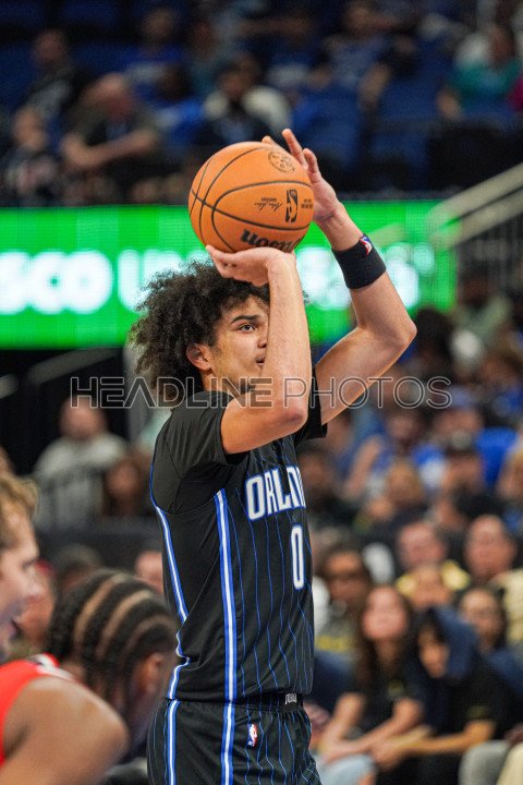 Orlando, Florida, USA, November 10, 2024, Orlando Magic guard Anthony Black #0 shoots a free throw at the Kia Center. (Photo Credit: Marty Jean-Louis)
