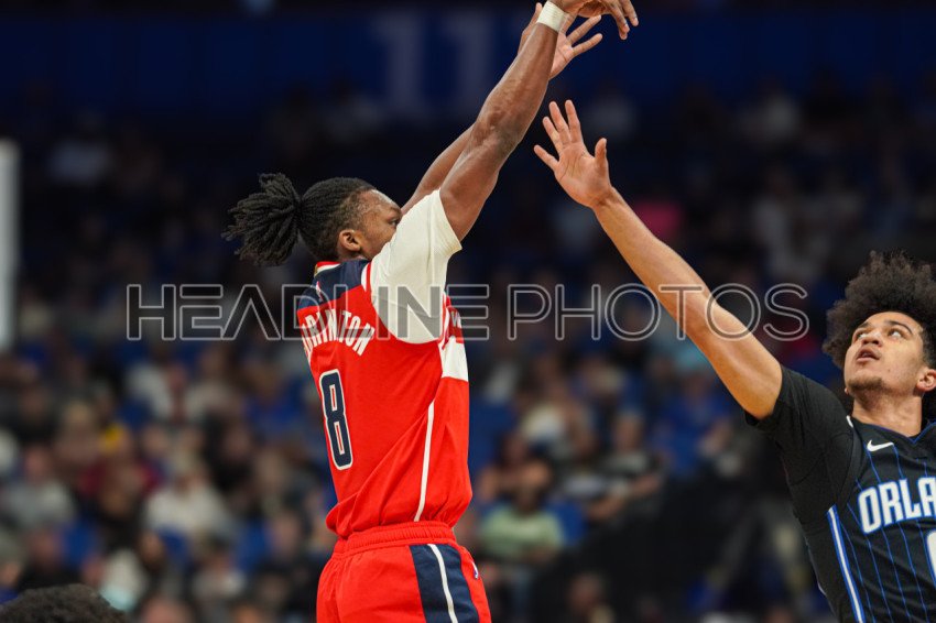 Orlando, Florida, USA, November 10, 2024, Washington Wizards Bub Carrington #8 attempt to score at the Kia Center. (Photo Credit: Marty Jean-Louis)
