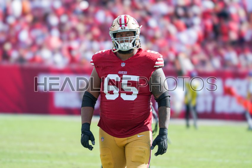 Tampa Bay, Florida, USA, November 10, 2024, San Francisco 49ers player Aaron Banks #65 at Raymond James Stadium. (Photo Credit: Marty Jean-Louis)