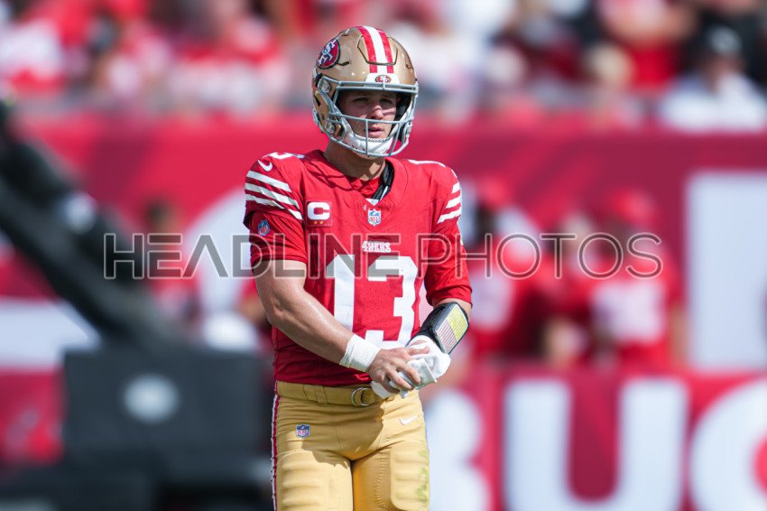 Tampa Bay, Florida, USA, November 10, 2024, San Francisco 49ers quarterback Brock Purdy #13 at Raymond James Stadium. (Photo Credit: Marty Jean-Louis)