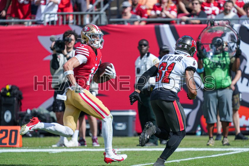 Tampa Bay, Florida, USA, November 10, 2024, San Francisco wide receiver Ricky Pearsall #14 makes a run resulting in a touchdown at Raymond James Stadium. (Photo Credit: Marty Jean-Louis)