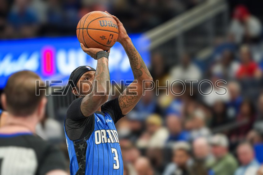 Orlando, Florida, USA, November 12, 2024, Orlando Magic guard Kentavious Caldwell-Pope #3 shoots a free throw at the Kia Center. (Photo Credit: Marty Jean-Louis)
