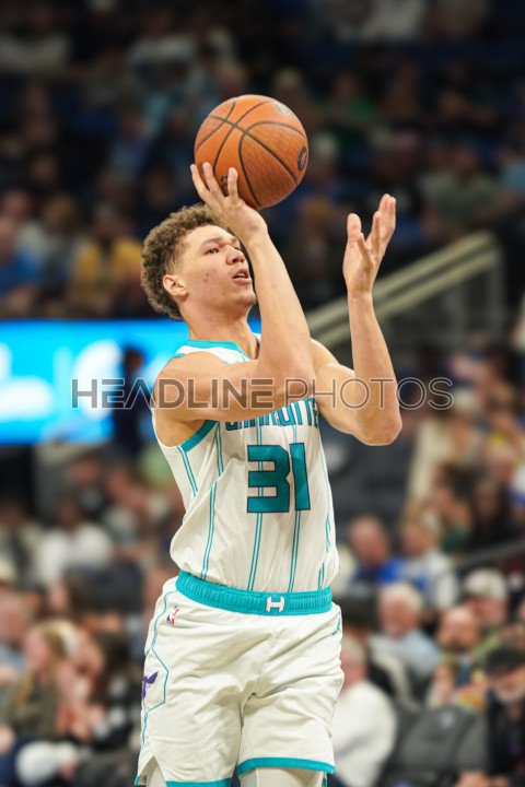Orlando, Florida, USA, November 12, 2024, Charlotte Hornets forward Tidjane Salaun #31 attempt to score at the Kia Center. (Photo Credit: Marty Jean-Louis)