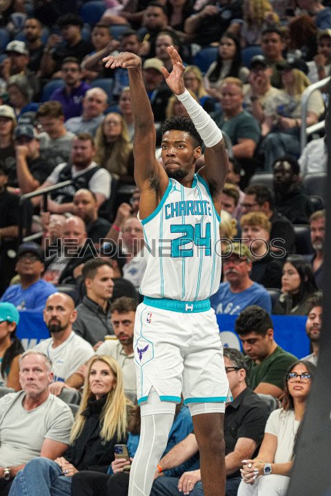 Orlando, Florida, USA, November 12, 2024, Charlotte Hornets guard Brandon Miller #24 shoots a three at the Kia Center. (Photo Credit: Marty Jean-Louis)