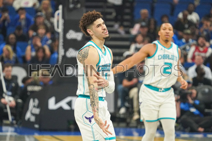 Orlando, Florida, USA, November 12, 2024, Charlotte Hornets guard LaMelo Ball #1 reacts after making a three in the first quarter at the Kia Center. (Photo Credit: Marty Jean-Louis)