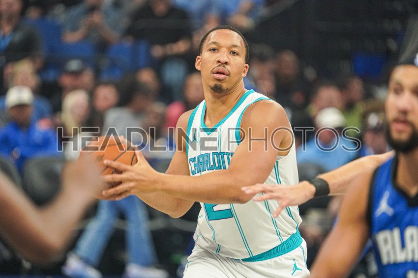 Orlando, Florida, USA, November 12, 2024, Charlotte Hornets forward Grant Williams #2 readies to make a pass at the Kia Center. (Photo Credit: Marty Jean-Louis)