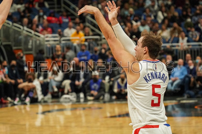 Orlando, Florida, USA, January 26, 2022, Los Angeles Clippers player Luke Kennard #5 shoots a three point shot at the Amway Center. (Photo Credit: Marty Jean-Louis)