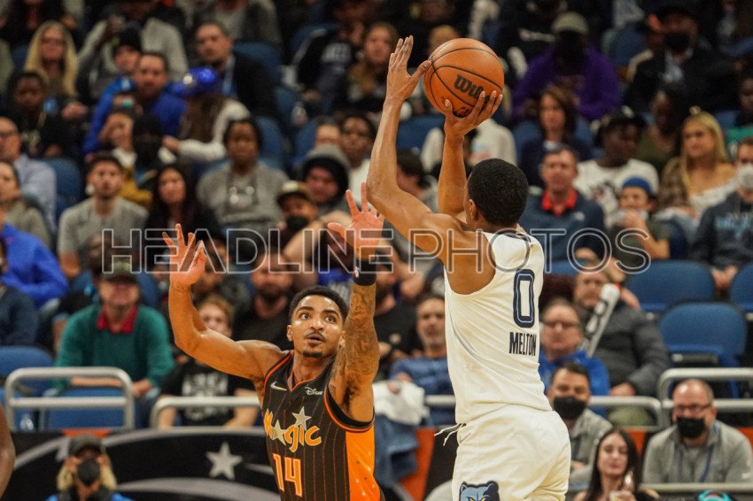 Orlando, Florida, USA, February 5, 2022,Memphis Grizzlies shooting Guard De'Anthony Melton #0 shoots a three point at the Amway Center. (Photo Credit: Marty Jean-Louis)