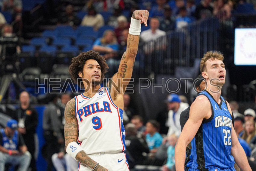 Orlando, Florida, USA, November 15, 2024, Philadelphia 76ers Kelly Oubre Jr #9 shoots a three in the first half at the Kia Center. (Photo Credit: Marty Jean-Louis)