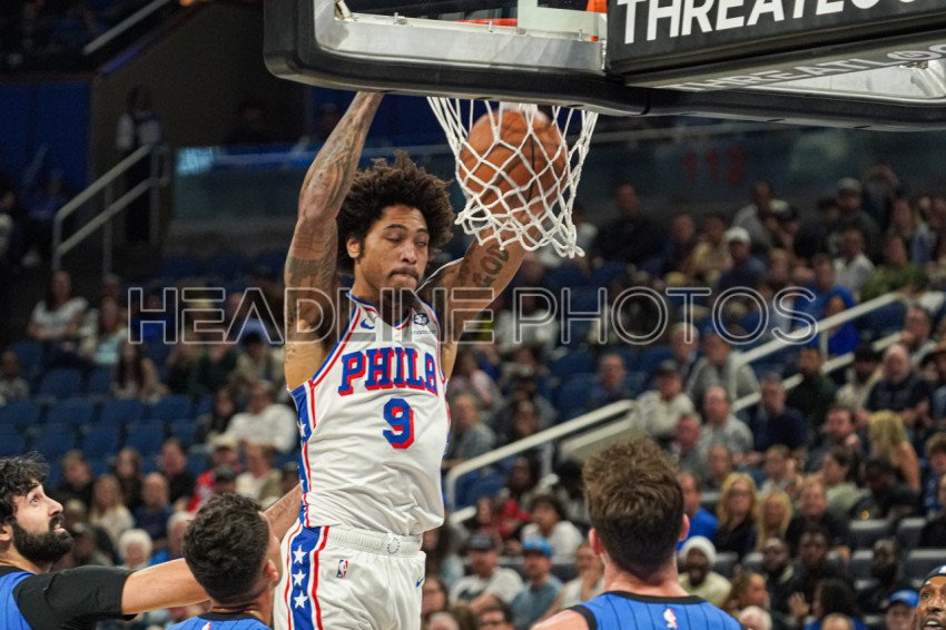 Orlando, Florida, USA, November 15, 2024, Philadelphia 76ers Kelly Oubre Jr #9 makes a dunk in the first half at the Kia Center. (Photo Credit: Marty Jean-Louis)