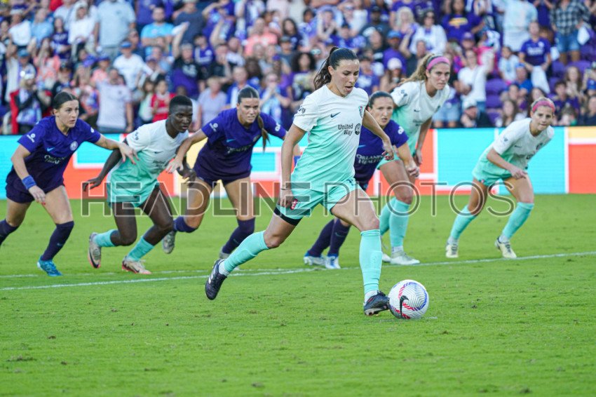 Orlando, Florida, USA, November 17, 2024, Kansas City Current player Vanessa DiBernardo #16 shoots a penalty resulting in goal at Inter&Co Stadium. (Photo Credit: Marty Jean-Louis)