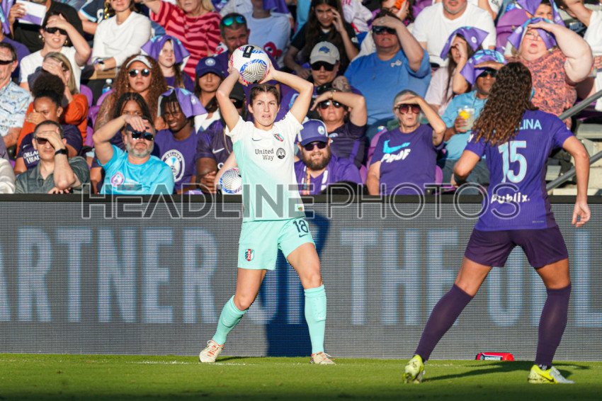 Orlando, Florida, USA, November 17, 2024, Kansas City Current player Izzy Rodriguez #18 makes a throw at Inter&Co Stadium. (Photo Credit: Marty Jean-Louis)