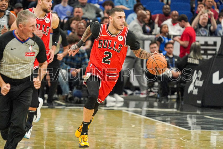Orlando, Florida, USA, November 27, 2024, Chicago Bulls guard Lonzo Ball #2 rushes forward at the Kia Center. (Photo Credit: Marty Jean-Louis)