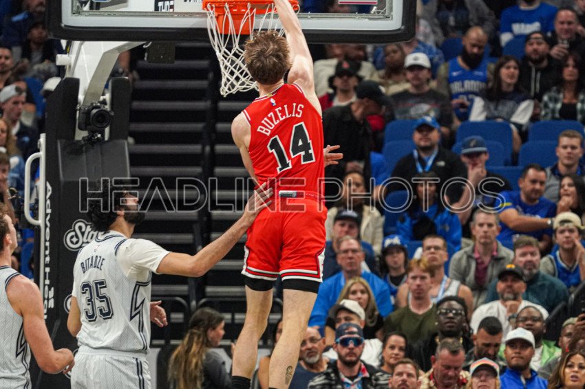 Orlando, Florida, USA, November 27, 2024, Chicago Bulls forward Matas Buzelis #14 makes a dunk at the Kia Center. (Photo Credit: Marty Jean-Louis)