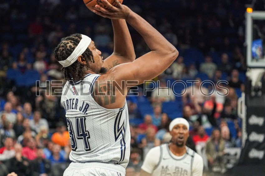 Orlando, Florida, USA, November 27, 2024, Orlando Magic center Wendell Carter Jr #34 shoots a three at the Kia Center. (Photo Credit: Marty Jean-Louis)