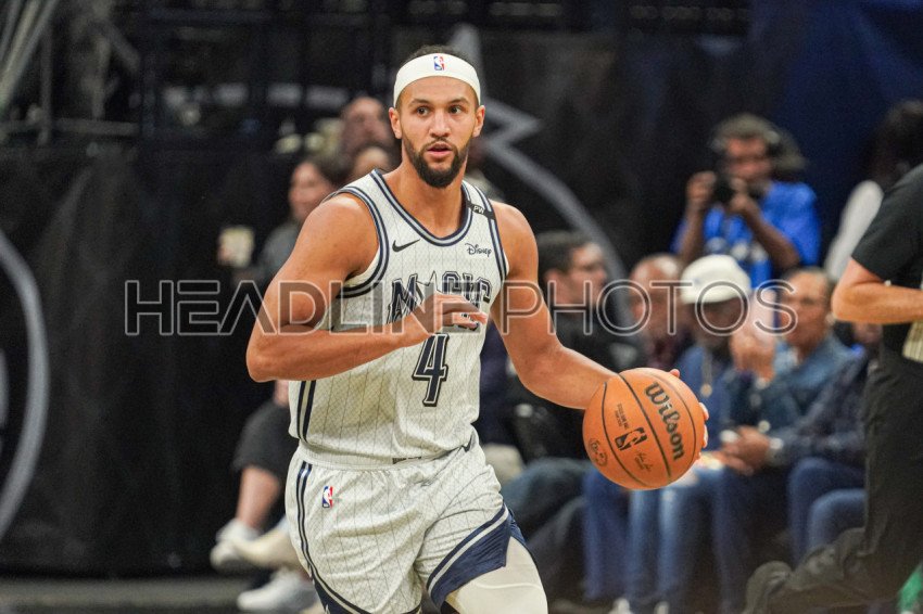 Orlando, Florida, USA, November 27, 2024, Orlando Magic guard Jalen Suggs #4 rushes forward at the Kia Center. (Photo Credit: Marty Jean-Louis)