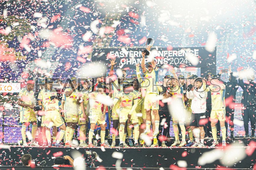 Orlando, Florida, USA, November 30, 2024, New York Red Bulls celebrate winning the Eastern Conference Final at Inter&Co Stadium. (Photo Credit: Marty Jean-Louis)