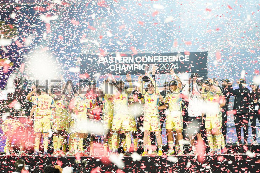 Orlando, Florida, USA, November 30, 2024, New York Red Bulls celebrate winning the Eastern Conference Final at Inter&Co Stadium. (Photo Credit: Marty Jean-Louis)