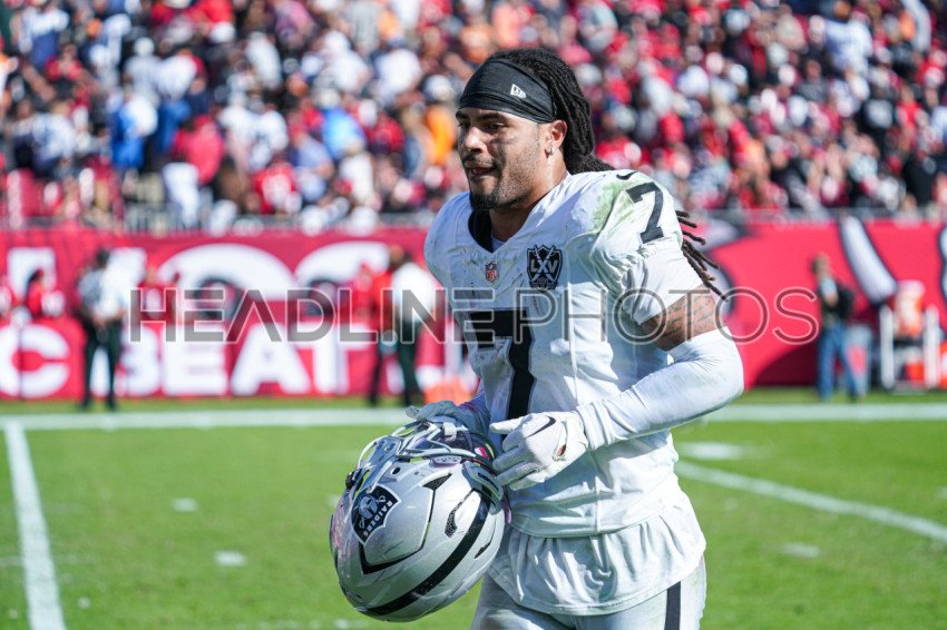 Tampa Bay, Florida, USA, December 8, 2024, Las Vegas Raiders player AJ Cole #7 at Raymond James Stadium. (Photo Credit: Marty Jean-Louis)