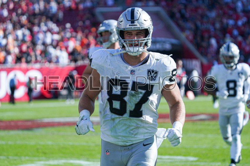 Tampa Bay, Florida, USA, December 8, 2024, Las Vegas Raiders player Michael Mayer #87 at Raymond James Stadium. (Photo Credit: Marty Jean-Louis)