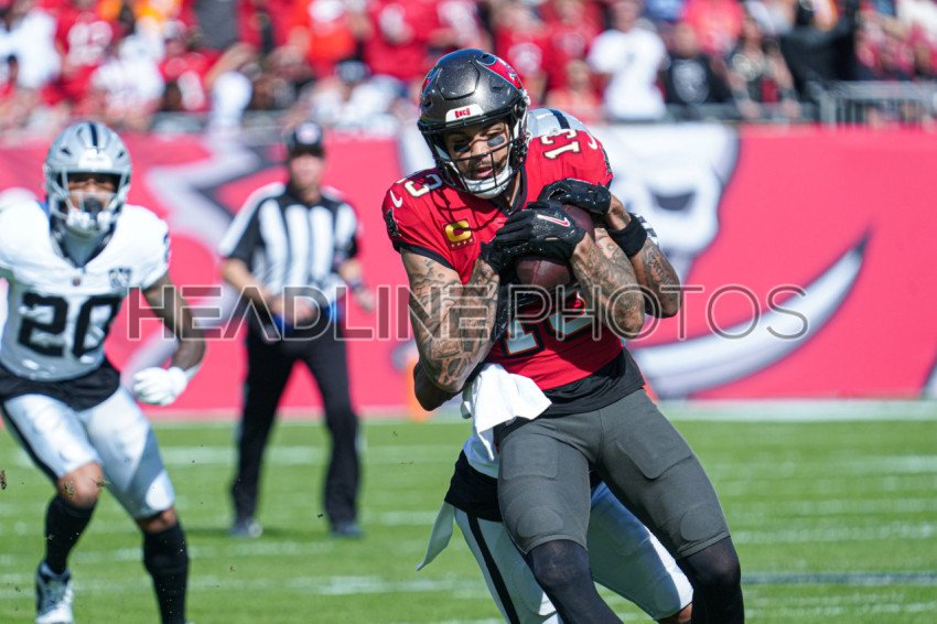 Tampa Bay, Florida, USA, December 8, 2024, Tampa Bay Buccaneers wide receiver Mike Evans #13 gets tackled at Raymond James Stadium. (Photo Credit: Marty Jean-Louis)