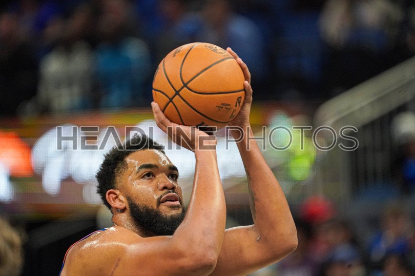 Orlando, Florida, USA, December 15, 2024, New York Knicks center Karl-Anthony Towns #32 attempt to score with a free throw at the Kia Center. (Photo Credit: Marty Jean-Louis)